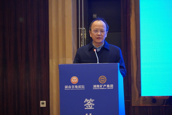 談文勝指出,地質(zhì)與礦業(yè)相互依存、共生共榮,此次簽訂的三個(gè)協(xié)議是雙方優(yōu)勢互補(bǔ)、互利共贏的重要舉措。通過優(yōu)勢資產(chǎn)和優(yōu)質(zhì)礦權(quán)的劃轉(zhuǎn)及雙方的緊密合作,將極大整合資源,實(shí)現(xiàn)戰(zhàn)略礦產(chǎn)的增儲(chǔ)上產(chǎn),并將釋放協(xié)同效能,共同推動(dòng)湖南礦業(yè)高質(zhì)量發(fā)展。對于深化雙方合作,他提出三點(diǎn)倡議:一是把握機(jī)遇求共進(jìn),利用各自優(yōu)勢,深化合作,服務(wù)地方經(jīng)濟(jì)社會(huì)發(fā)展;二是緊密聯(lián)動(dòng)求共融,建立有效的溝通聯(lián)動(dòng)機(jī)制,確保資源信息共享,項(xiàng)目需求對接;三是守正創(chuàng)新求共贏,持續(xù)推進(jìn)合作創(chuàng)新,為打造湖南礦業(yè)集群提供強(qiáng)勁支撐。
