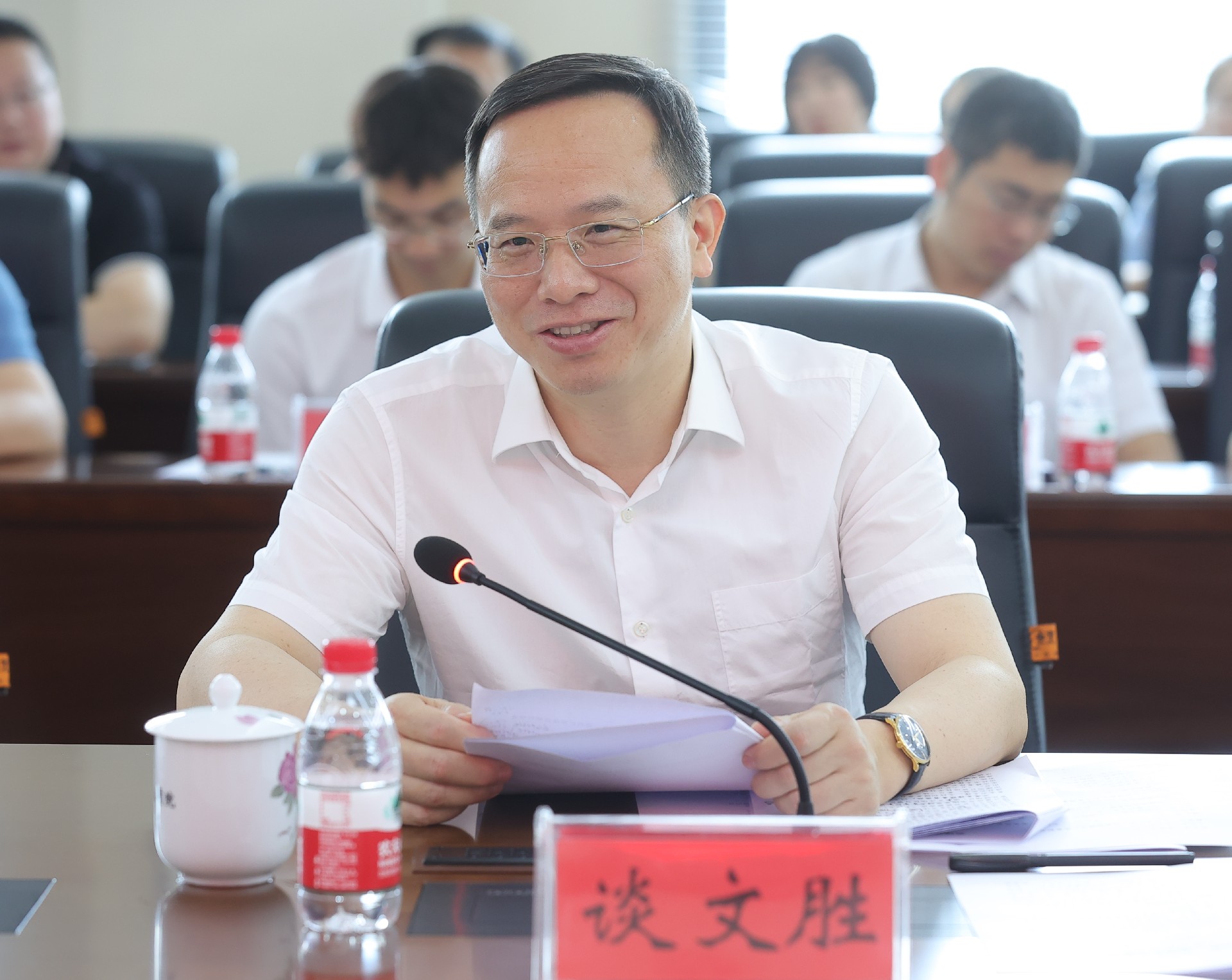 談文勝對(duì)中國(guó)地質(zhì)調(diào)查局和省自然資源廳長(zhǎng)期以來(lái)對(duì)湖南地質(zhì)系統(tǒng)的關(guān)心厚愛(ài)表示由衷感謝。他指出,此次調(diào)研對(duì)湖南地質(zhì)事業(yè)具有非比尋常的意義,為湖南地質(zhì)事業(yè)服務(wù)全省高質(zhì)量發(fā)展指明了方向、注入了動(dòng)力、增強(qiáng)了信心。他表示湖南省地質(zhì)院在新一輪找礦突破戰(zhàn)略行動(dòng)中有進(jìn)展、有突破、有創(chuàng)新、有拓展、有壓力,要以此次湖南省政府與中國(guó)地質(zhì)調(diào)查局簽署戰(zhàn)略合作協(xié)議為契機(jī),全面落實(shí)好習(xí)近平總書(shū)記考察湖南的重要講話精神和省委十二屆六次全會(huì)精神,認(rèn)真領(lǐng)會(huì)、抓好落實(shí),以實(shí)際行動(dòng)展示好湖南地質(zhì)的使命擔(dān)當(dāng)和品牌形象。