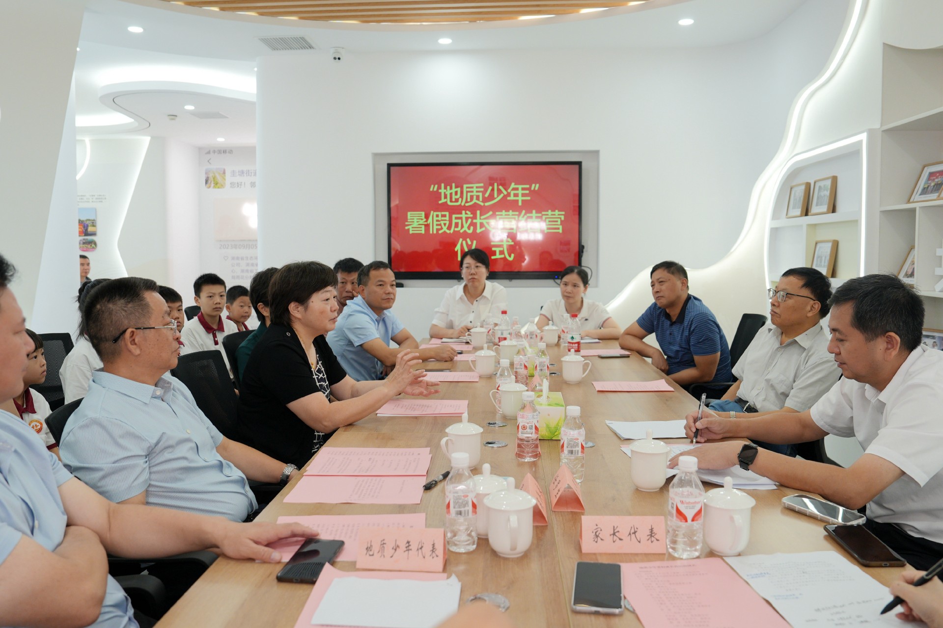 座談交流環(huán)節(jié),吳兵良介紹了暑假成長營的開展情況,對少年們的成長與收獲給予肯定。地質(zhì)少年代表易瑾浩發(fā)言,分享了自己的所見所聞、所學(xué)所感,言語中流露出對地質(zhì)事業(yè)的敬畏與向往。兩位家長代表蘇媛、曹暉分別發(fā)言,表達(dá)了對孩子成長的欣慰以及對多方組織的感謝之情。