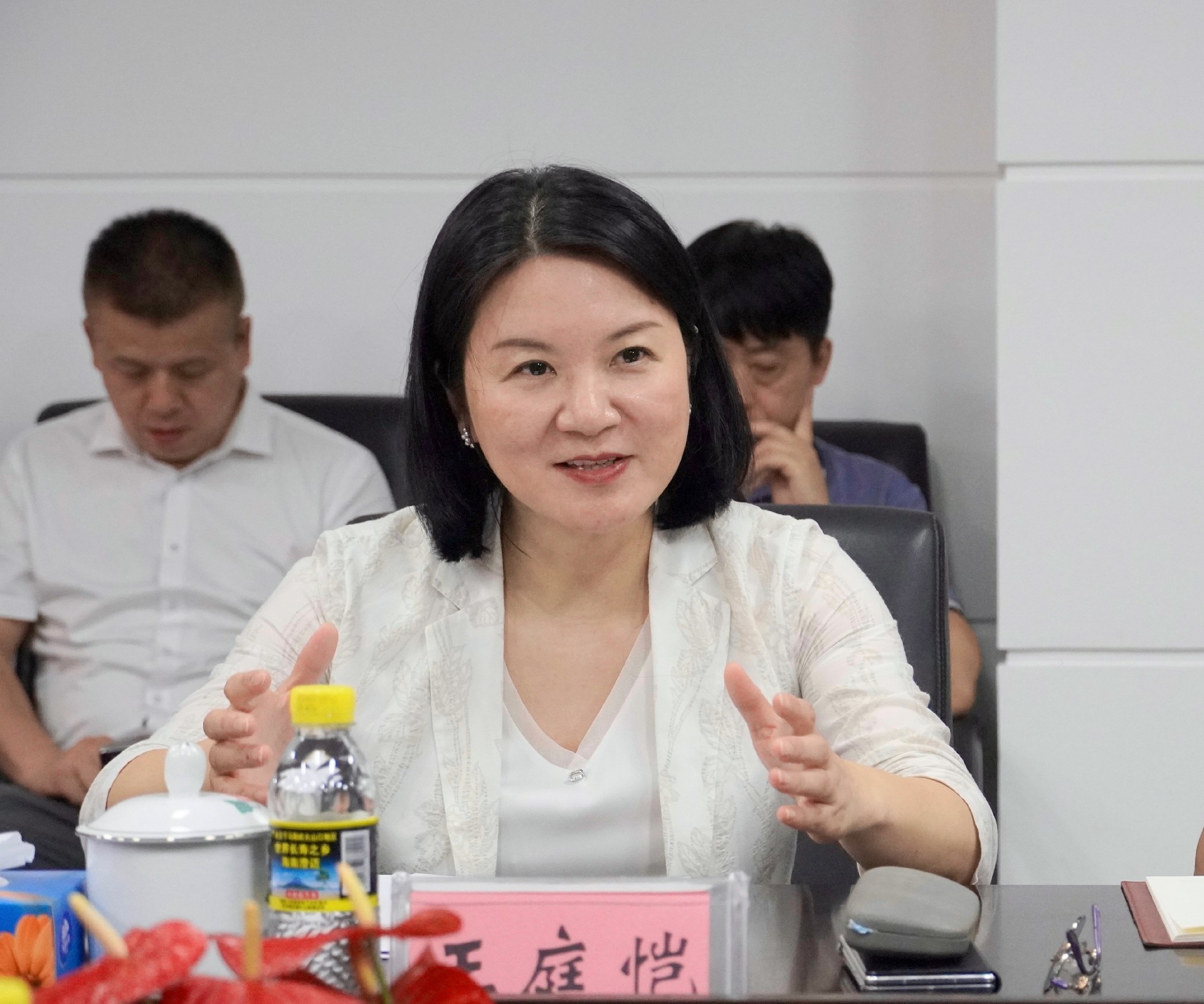 王庭愷對談文勝一行的到來表示熱烈歡迎,她介紹了省政府駐海南辦事處的發(fā)展歷程、職能定位和近期重點工作。她表示,按照曉明書記調(diào)研講話要求,當前辦事處正圍繞“招商引資、湘商回歸、湘品出湘、園區(qū)建設(shè)、港區(qū)聯(lián)動”五大主責主業(yè),秉持“跨山越海、雙向奔赴”的理念,充分發(fā)揮海南自貿(mào)港的政策優(yōu)勢,積極為湘瓊兩地搭建合作橋梁。下一步,將加強與省地質(zhì)院的聯(lián)系對接,搭建院地、院企、院校交流的平臺,探索在瓊業(yè)務的新模式、新路徑,推動更多項目落地,打造湘瓊合作新典范。