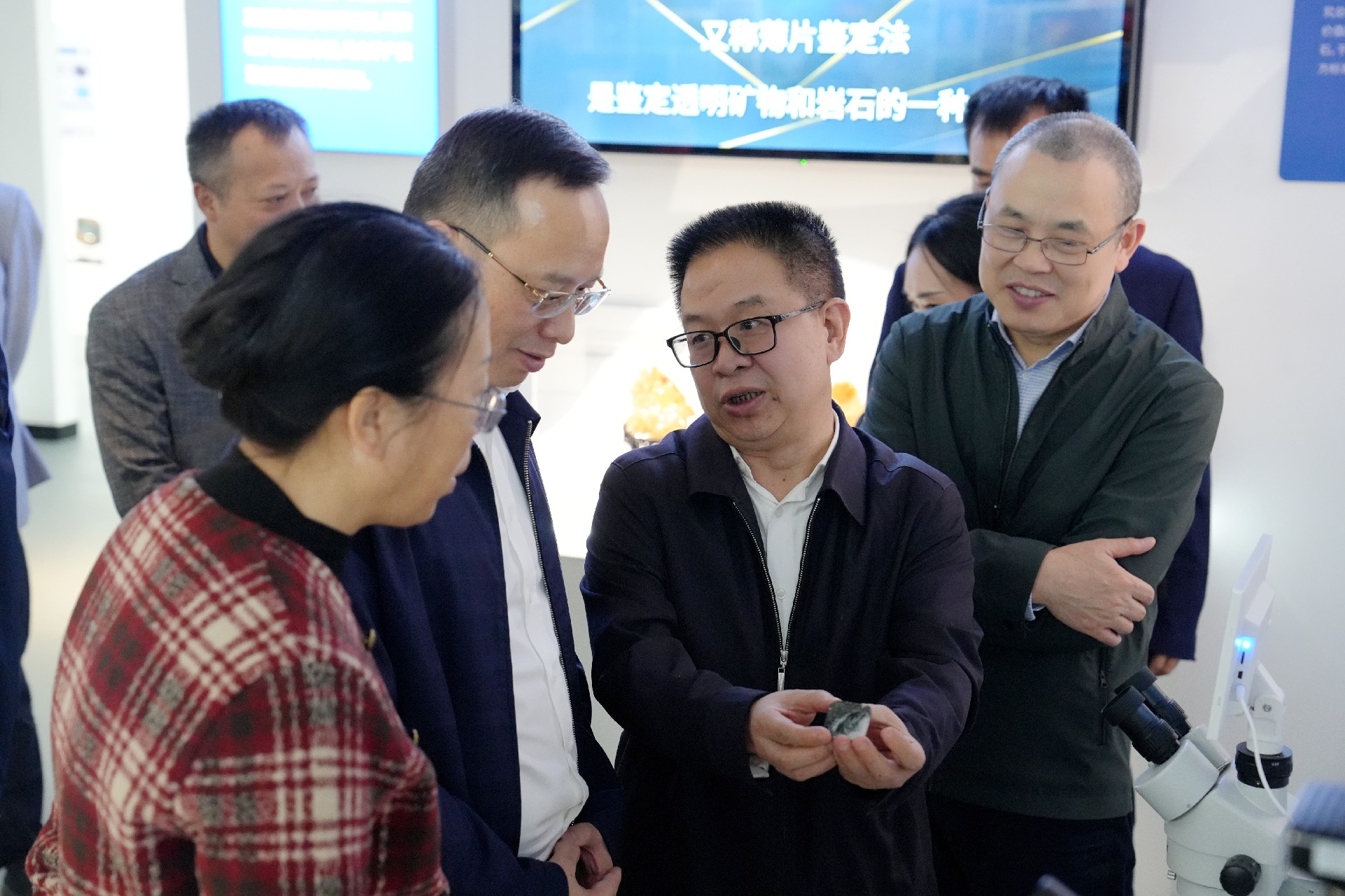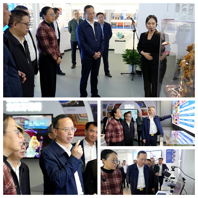 開館儀式后,大家一同參觀科普館,在歲月流轉(zhuǎn)、光影交錯(cuò)中,尋根溯源,感悟地質(zhì)初心;用高端的儀器、有趣的實(shí)驗(yàn),零距離觸摸地質(zhì)科技的力量;于動(dòng)靜結(jié)合、虛實(shí)呼應(yīng)中,沉浸式體驗(yàn)地質(zhì)測試新技術(shù)新方法新成果,感受礦物寶玉石之美、感悟地質(zhì)文化之魂。